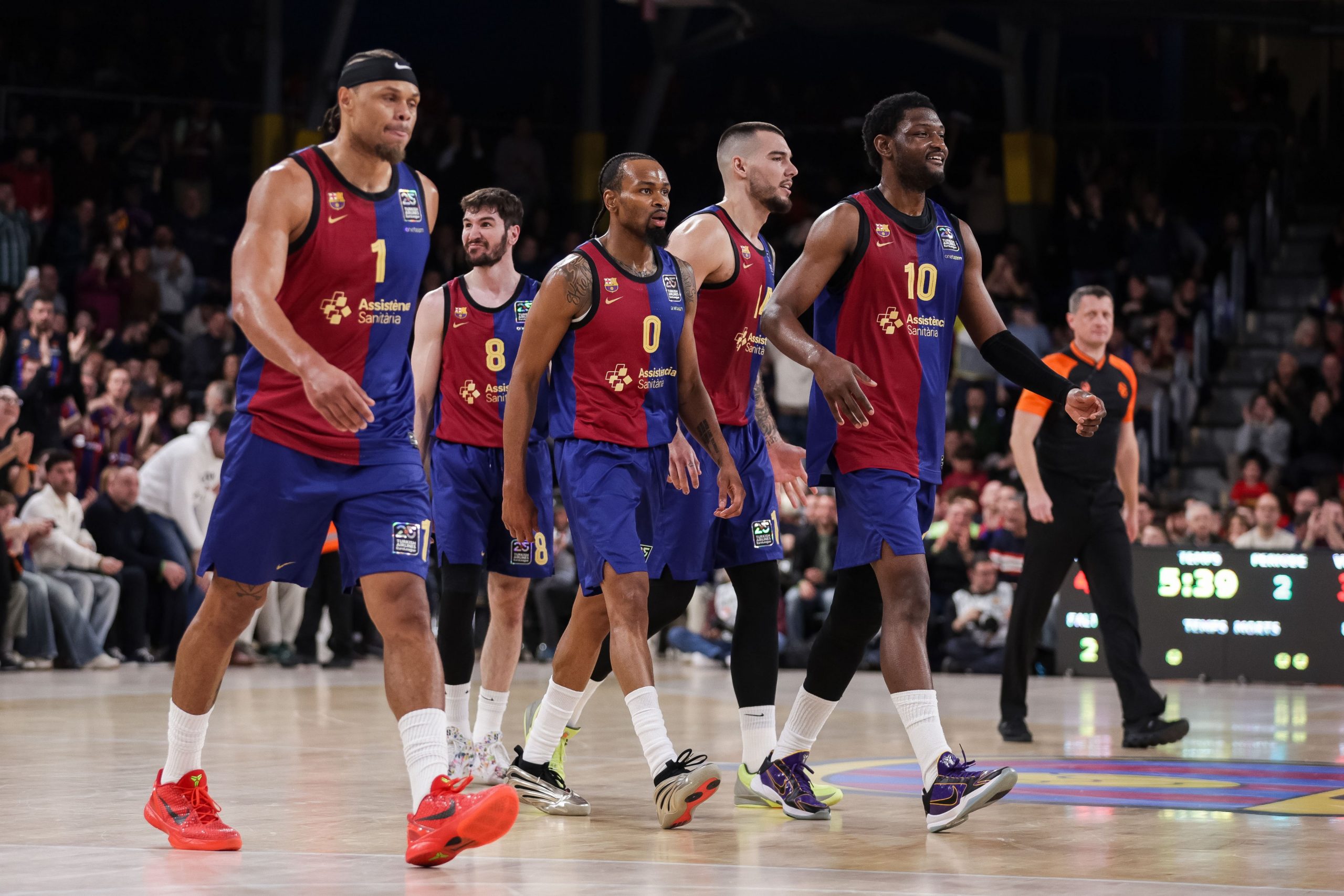 El quintento del FC Barcelona ante el Partizan era el siguiente:Satoransky, Brizuela, Abrines, Parker, Fall...