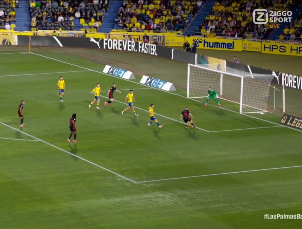 Luego, a los pocos minutos, surgió la polémica, donde los canarios pedían penalti por mano de Eric García, donde ciertamente, interceptaba un balón que iba a puerta con el brazo izquierdo, pero este penalti no fue pitado, por fuera de juego previo que había del atacante del UD Las Palmas previamente al inicio de la jugada.
