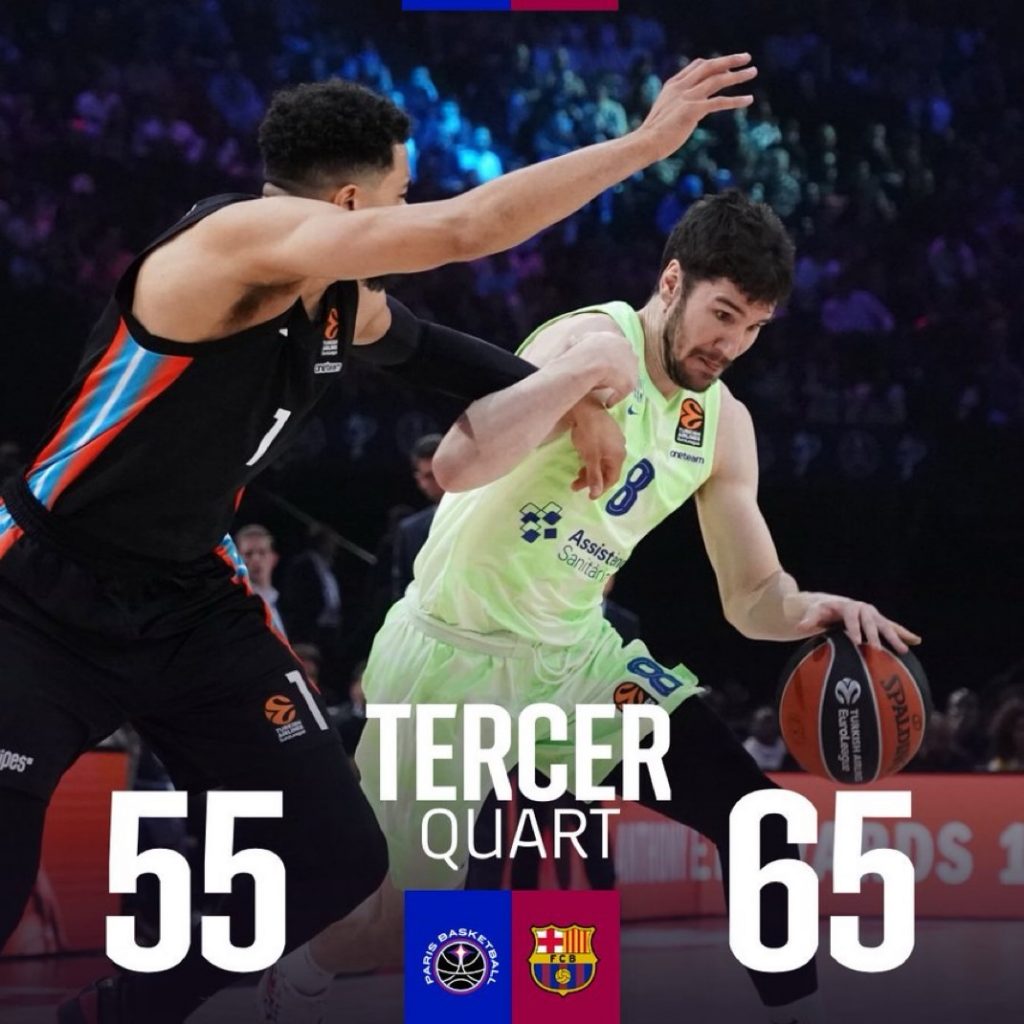 El Barcelona en el tercer cuarto a salido bastante centrado pero le costaba meter. canadtas bsjo el aro ,pero el resultado era el siguiente 42’54 el Barcelona a tendido de pedir tiempo muerto ya que el Paris estaba apretando en el juego 48-56 resultado del tercer cuarto 55-65 ,el Barcelona en el ultimo cuarto no podra bajar el ritmo de su defensa si quiere ganar el partido