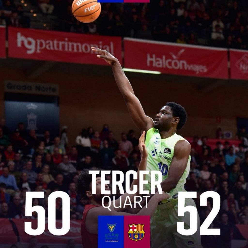 El Barcelona en el tercer cuarto apretaba más en la defensa, pero hacia pérdidas de balones, el resultado era el siguiente 38-48, el murcia con 2 triples seguidos han obligado a pedir tiempo muerto al Barcelona, el resultsdo era el siguiente 44-48. Final del tercer tiempo 50-52