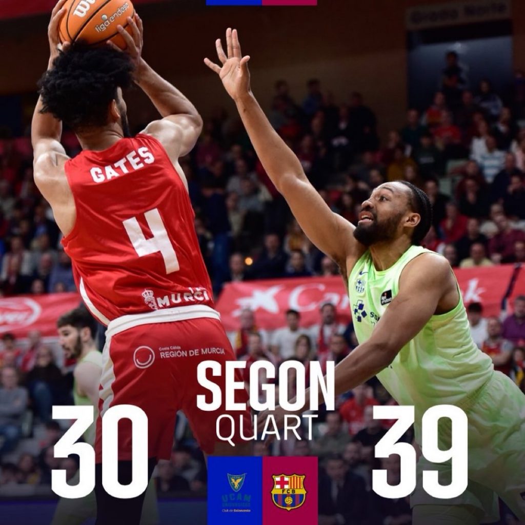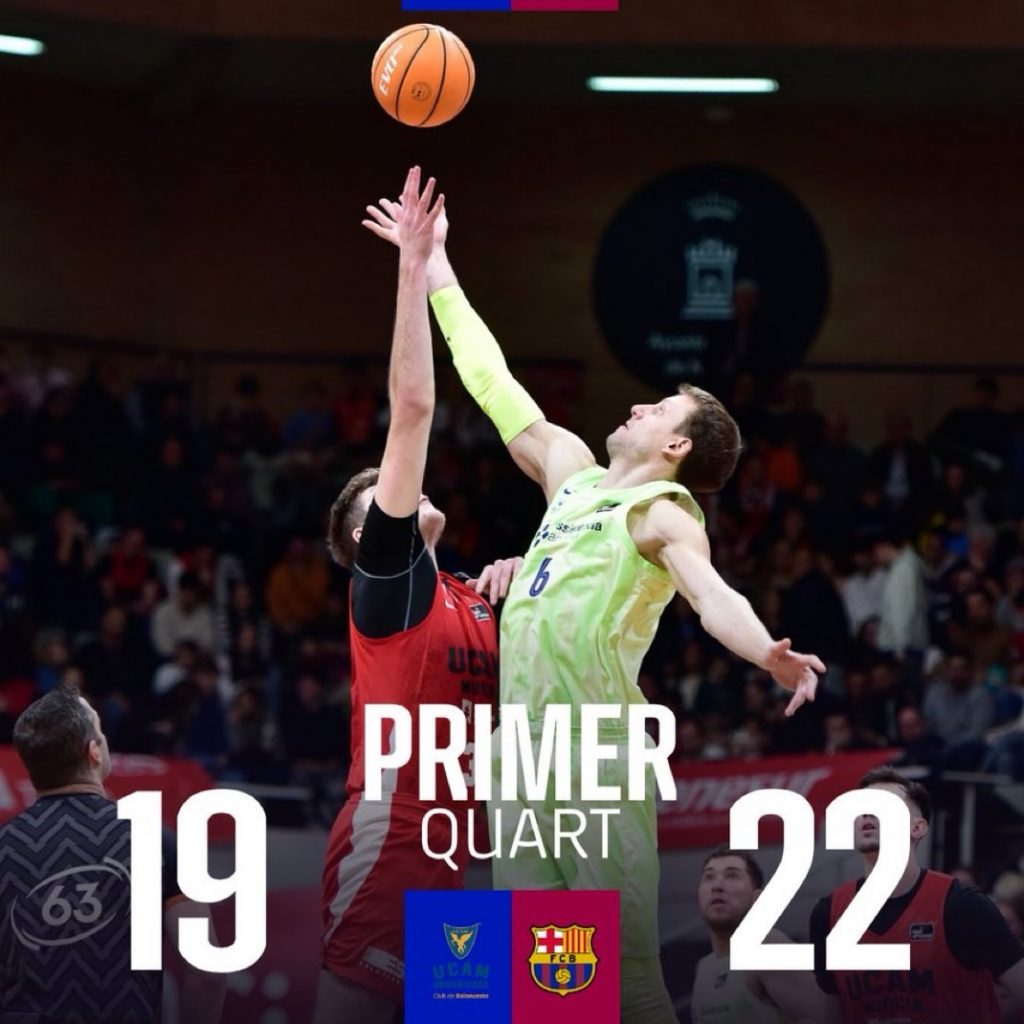 El partido ha empezado con mucha fuerza, el murcia ha salido con su buena defensa, no dejaba correr al Barcelona, también estaba acertado en la línea de 3, ya que el primer basquet de 3, el resultado era el siguiente 12-9 pero el Barcelona en los últimos 2 minutos, ha apretado un poco más. Resultado final del primer cuarto 19-22