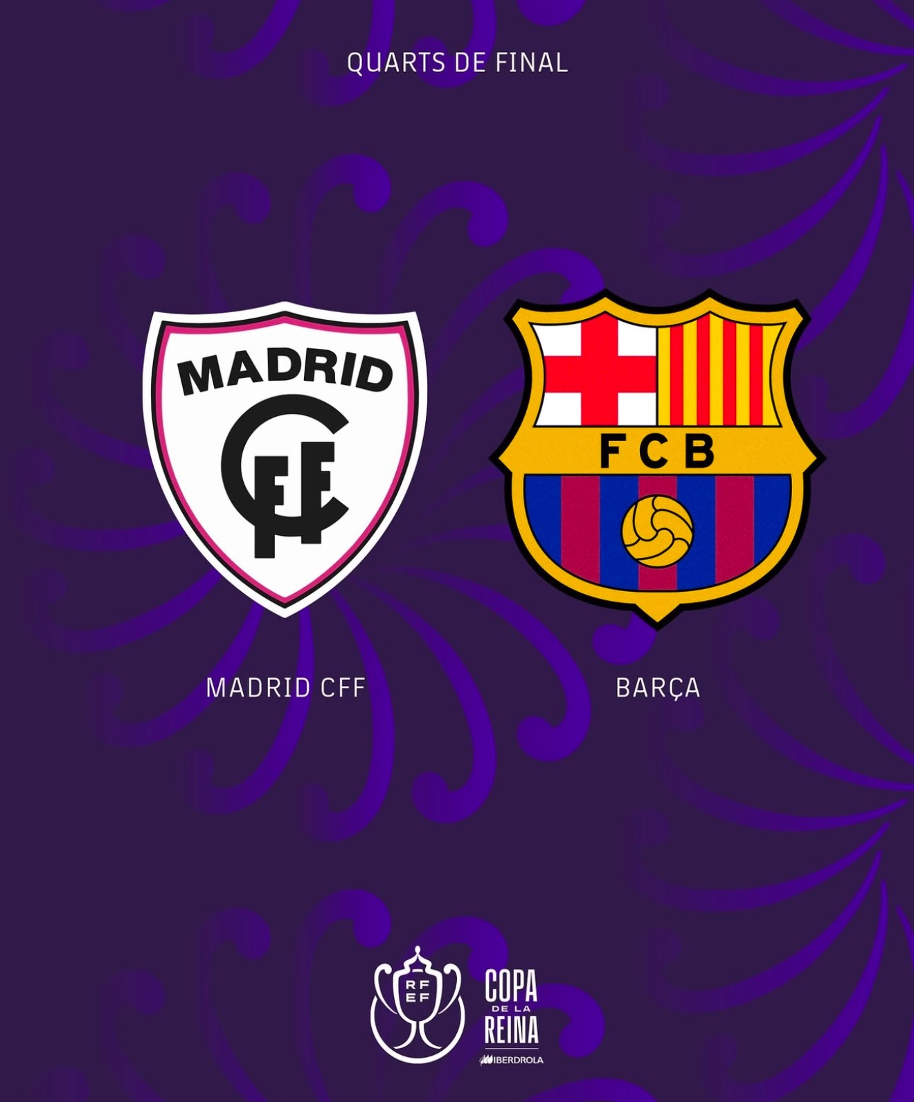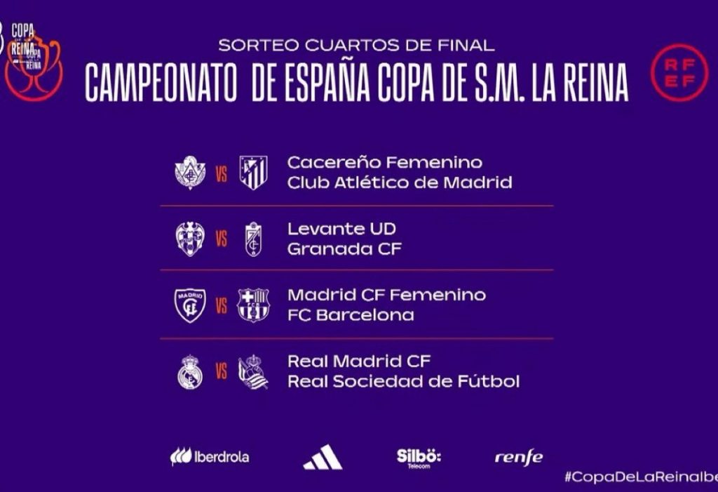 Hoy se ha realizado el sorteo para saber los cruces de los cuartos de final de la Copa de la Reina, donde el Barça Femení era uno de los 8 equipos que estaban dentro del bombo del sorteo, acompañado de Cacereño Femenino, Atlético de Madrid, Levante UD, Granada CF, Madrid CFF, Real Madrid y Real Sociedad