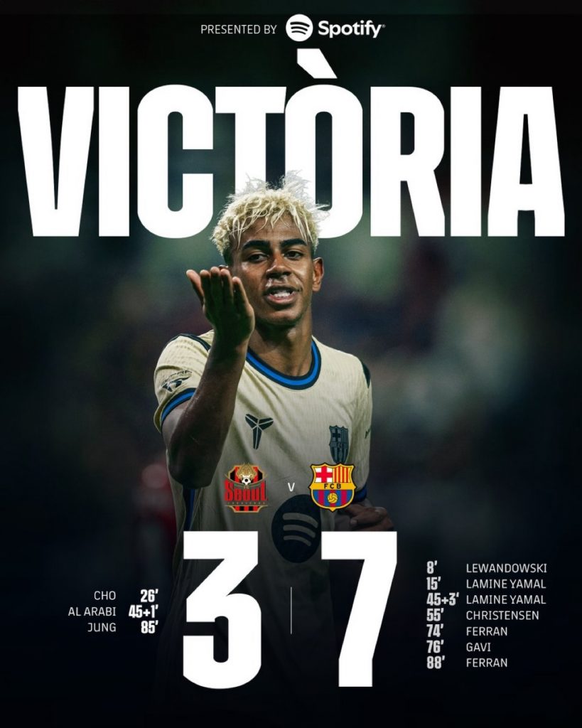 Hoy, ante el Daegu FC, el Barça completó su gira con una goleada por 0-5. Fue el mejor partido de la gira a nivel colectivo y defensivo. Destacó el debut goleador de Marcus Rashford y la gran actuación de Joan Garcia bajo palos, quien dejó por fin la portería a cero y apunta a ser el portero titular esta temporada.