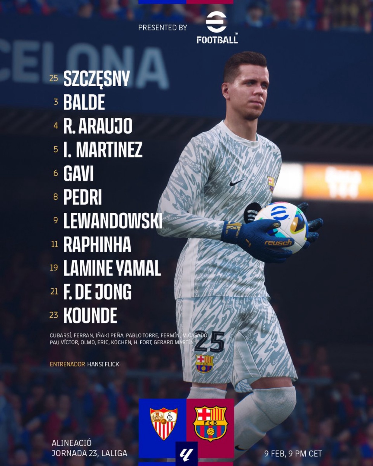 Alineación FCBarcelona Jornada 23 LaLiga. Sevilla v Barça