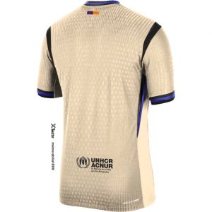 la camiseta es de color dorado, color que recuerda a la camiseta visitante de hace 2 temporadas, la 2022/23, donde el Barça se coronó campeón de LaLiga y de la Supercopa de España, los únicos trofeos de la etapa de Xavi Hernández como entrenador culer, donde también coincidió con los fichajes de Robert Lewandowski, Joules Koundé y Raphinha esa misma temporada, junto a las llegadas como agentes libres de Frank Kessié y Andreas Christensen.