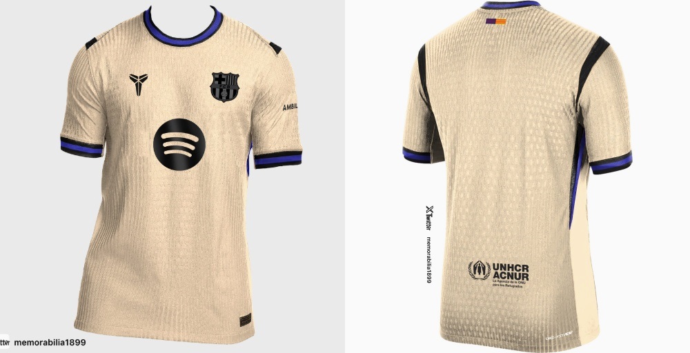 Como ya comentamos hace varias semanas también en un artículo parecido a este por aquí, donde se hablaba de detalles nuevos sobre la equipación visitante de la temporada 2025/26 del Fútbol Club Barcelona… Nuestro amigo @memorabilia1899, ha subido estos días atrás en su Twitter, más imágenes de la próxima donde se enseña de manera “casi definitiva” la próxima equipación visitante del FCBarcelona, donde se colaborará con la marca de Kobe Bryant con todo lujo de detalles.