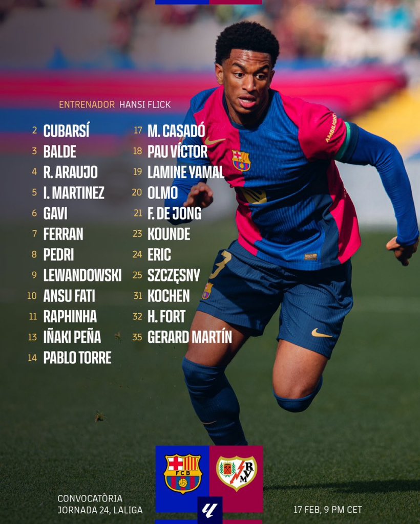 El Fútbol Club Barcelona acaba de hacer pública la convocatoria del Barça vs Rayo Vallecano...